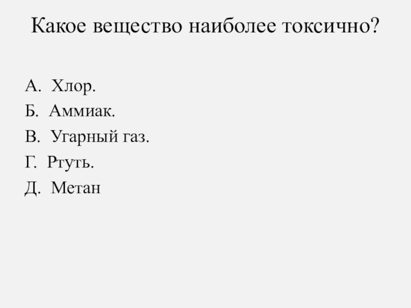 Слайд 83Какое вещество наиболее токсично?