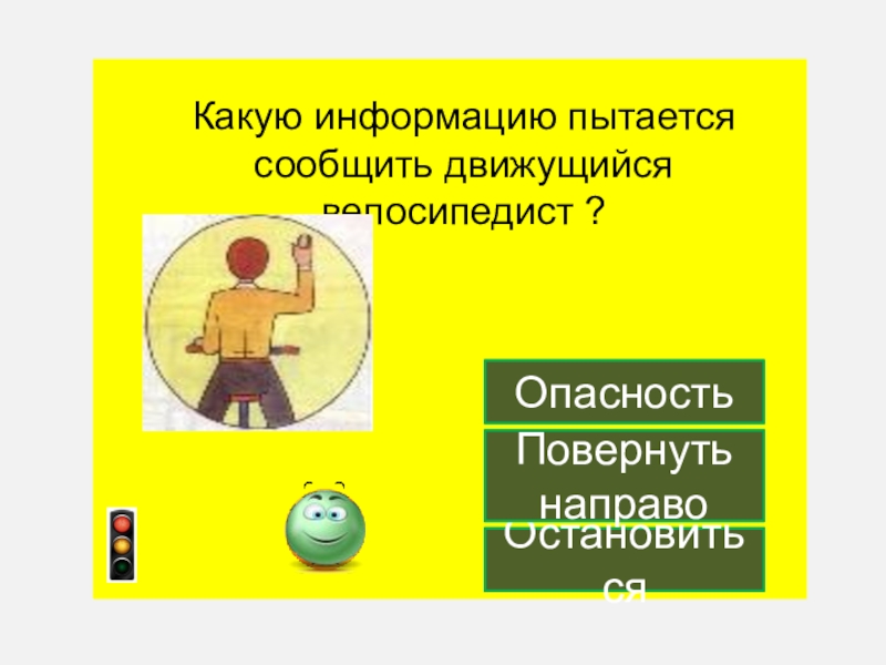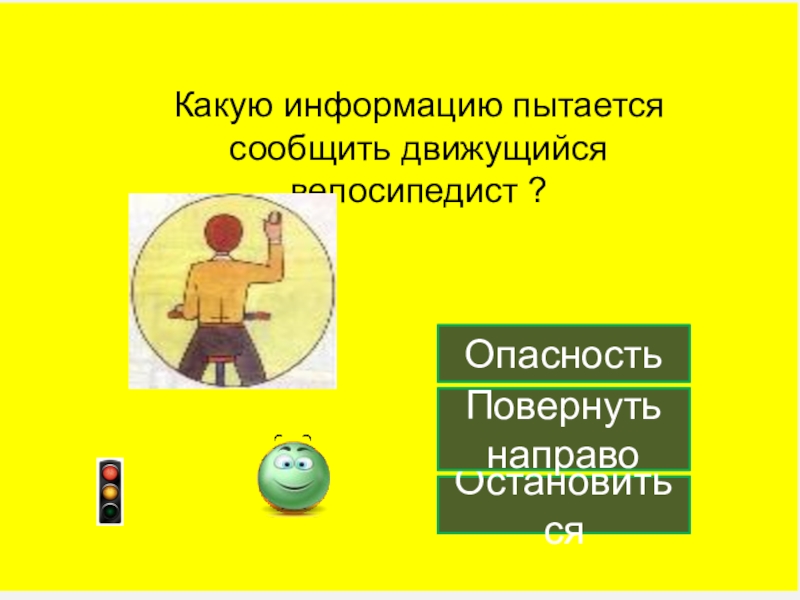 Какую информацию пытается сообщить движущийся велосипедист ?