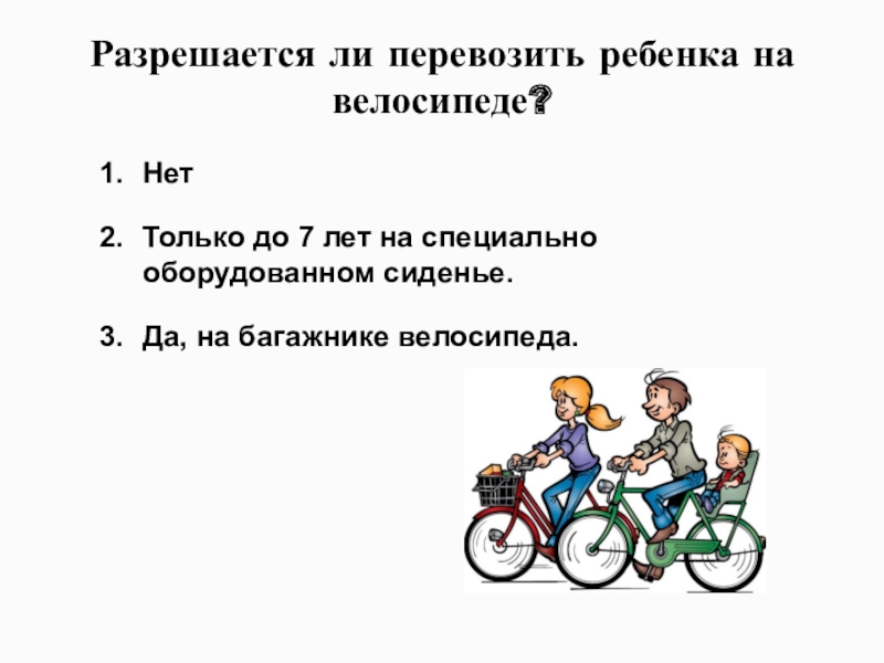 Слайд 73Разрешается ли перевозить ребенка на велосипеде?