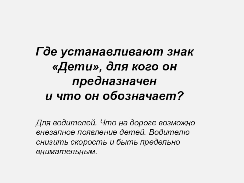Для водителей. Что на дороге возможно внезапное появление детей. Водителю снизить скорость и быть предельно внимательным.