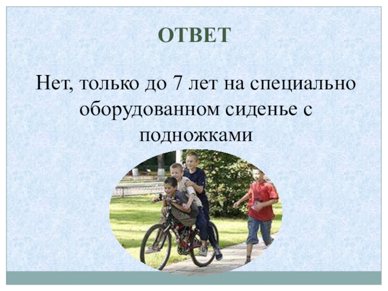 Слайд 14Перевозка пассажиров на велосипеде разрешена …