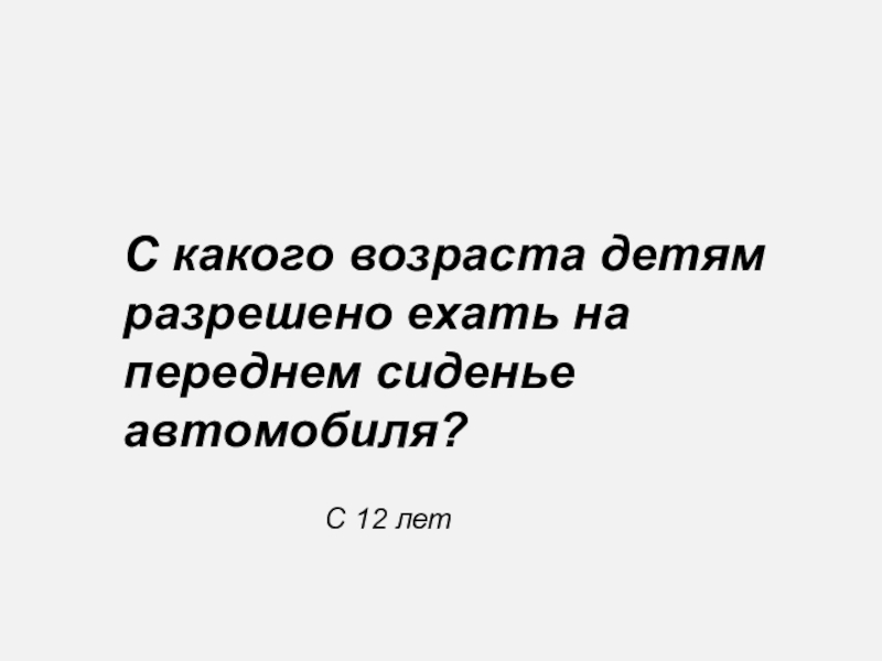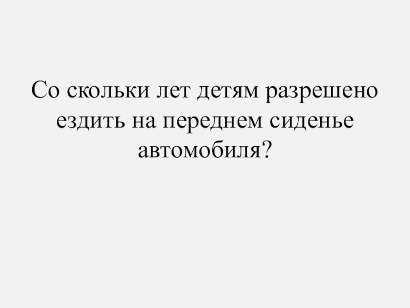 Слайд 95Со скольки лет детям разрешено ездить на переднем сиденье автомобиля?
