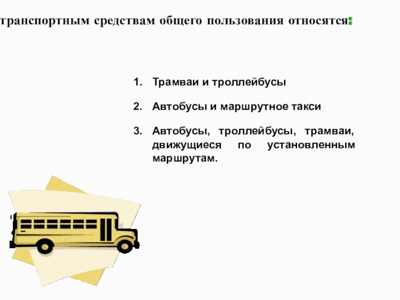 Слайд 74К транспортным средствам общего пользования относятся: