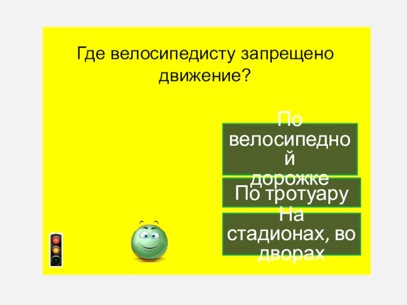 Слайд 50Где запрещено ездить на велосипеде?