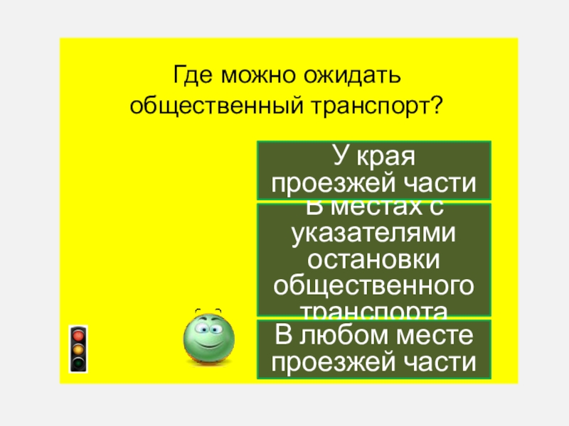 Слайд 15Где можно ожидать общественный транспорт?