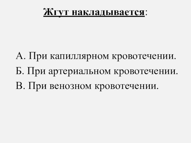 Слайд 65Жгут накладывается: