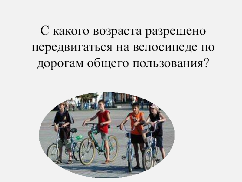 С какого возраста разрешено передвигаться на велосипеде по дорогам общего пользования? (с 14 лет).