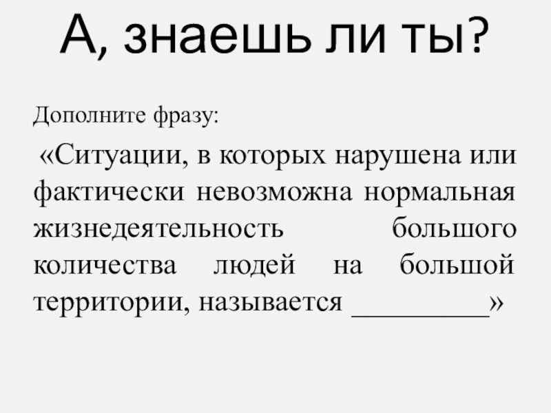 невозможна нормальная жизнедеятельность большого количества людей на большой территории, называется _________»