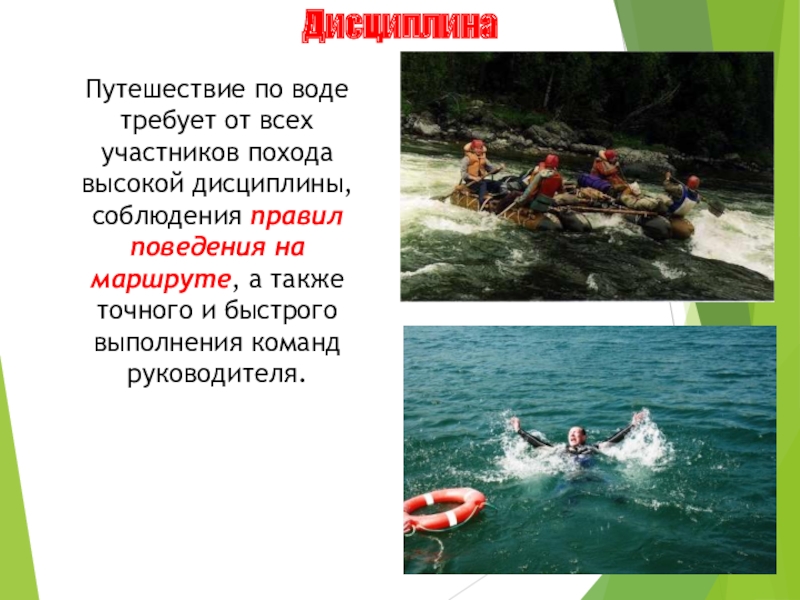 В самом простом походе турист-водник должен уметь хорошо плавать; собирать и ремонтировать туристское судно; правильно упаковывать, размещать и защищать от ветра продовольствие и снаряжение; правильно садиться на судно и сходить с него, грести и управлять им, подходить, причаливать к берегу и отваливать (отходить) от берега. Турист-водник обязан хорошо знать и распознавать препятствия, на водных маршрутах, владеть приемами их преодоления, уметь применять различные способы страховки.