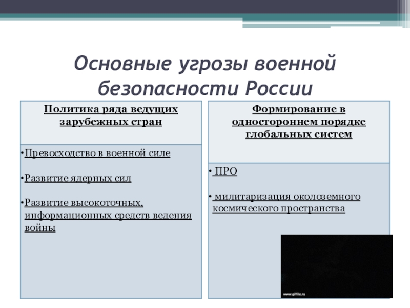 -Разработка и реализация различных мер ( политических, дипломатических, военных, экономических) направленных на снижение угроз со стороны стран агрессоров.