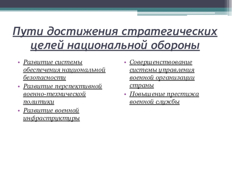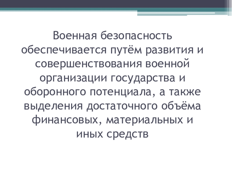 -Осуществляется с помощью экономических возможностей государства, развития системы военно-патриотического воспитания, военной структуры государства