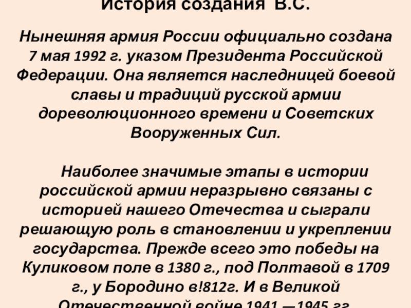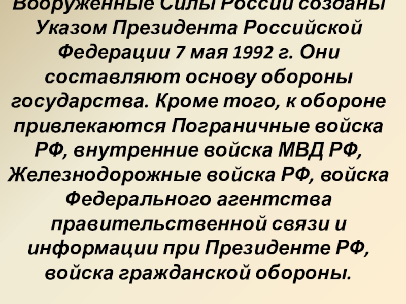 Слайд 3Вооруженные Силы России созданы Указом Президента Российской Федерации 7 мая 1992