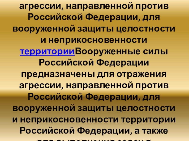 Слайд 2Вооруженные силы Российской Федерации предназначены для отражения агрессииВооруженные силы Российской Федерации