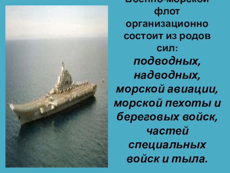 Слайд 11Военно-морской флот организационно состоит из родов сил:
