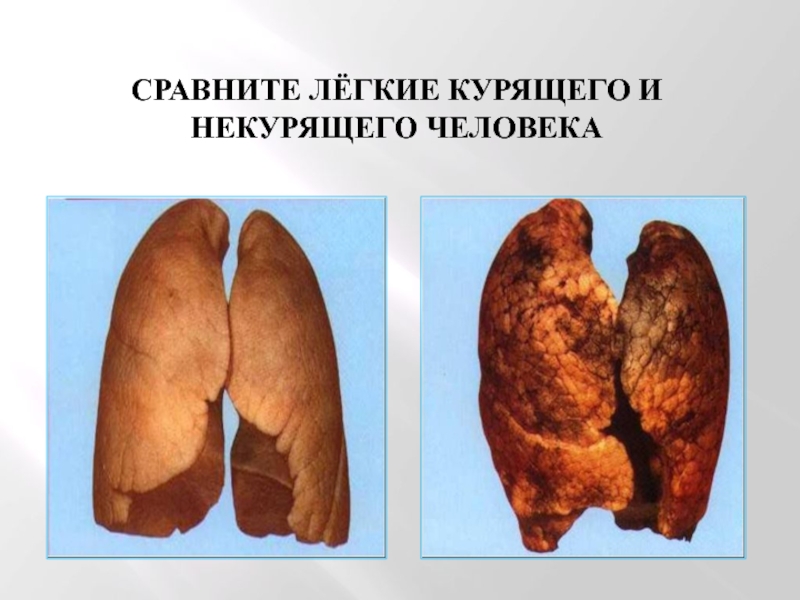 Слайд 18СРАВНИТЕ ЛЁГКИЕ КУРЯЩЕГО И НЕКУРЯЩЕГО ЧЕЛОВЕКА