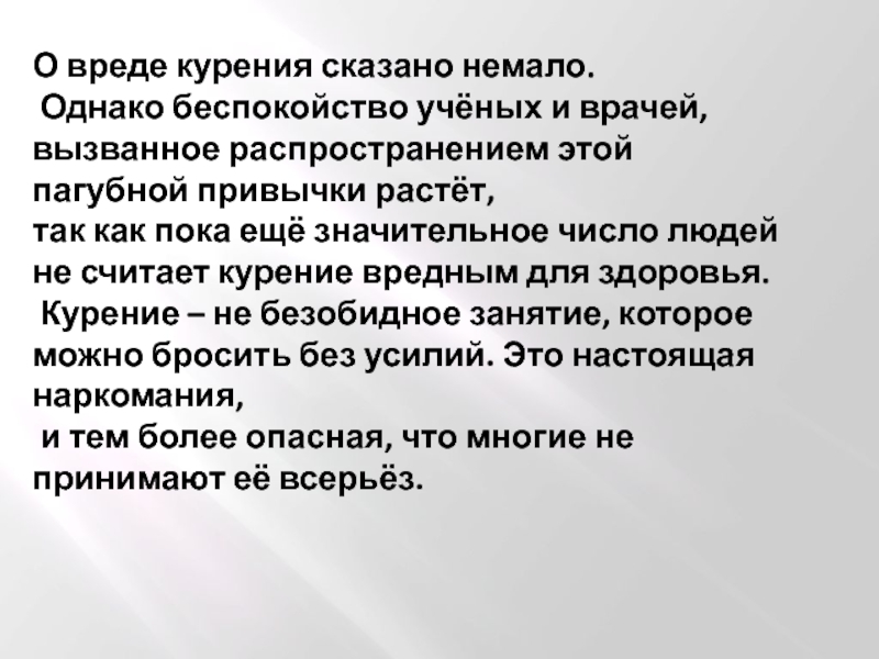 Слайд 16О вреде курения сказано немало.