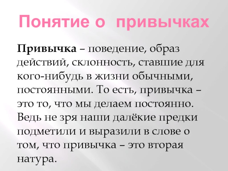 Привычка – поведение, образ действий, склонность, ставшие для кого-нибудь