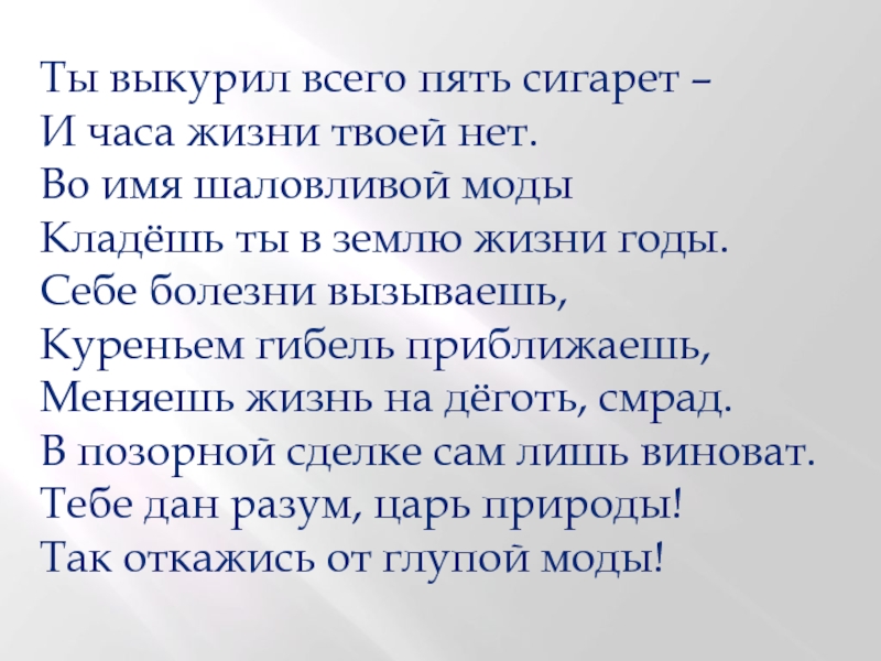 Слайд 19Ты выкурил всего пять сигарет –