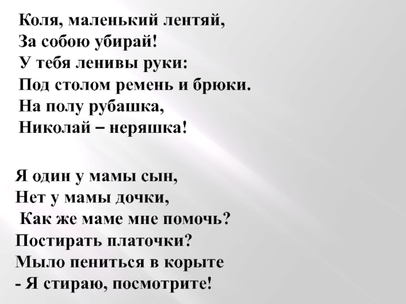 Слайд 7Коля, маленький лентяй,