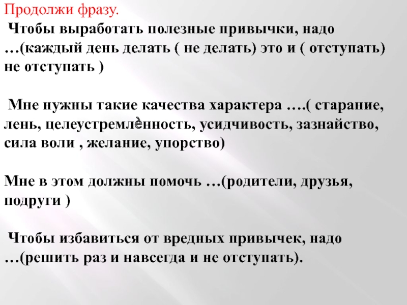 Чтобы выработать полезные привычки, надо …(каждый день делать (
