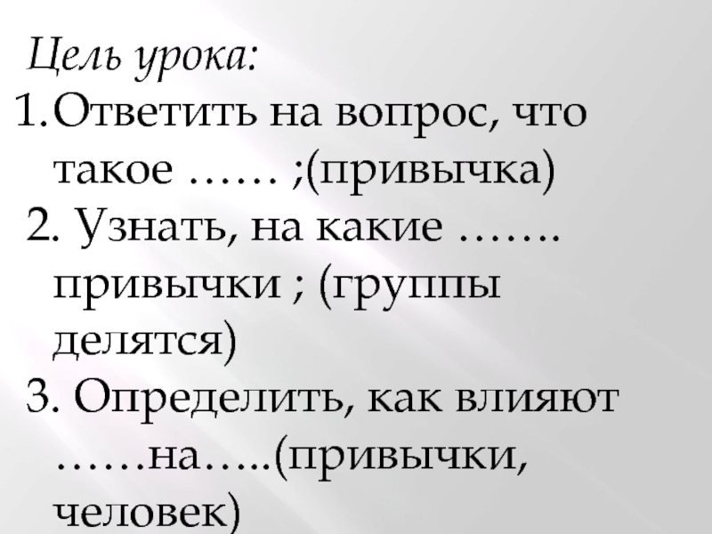 …….привычки ; (группы делятся)