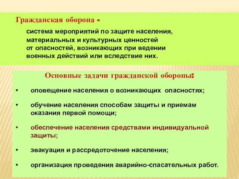 Основные задачи гражданской обороны: