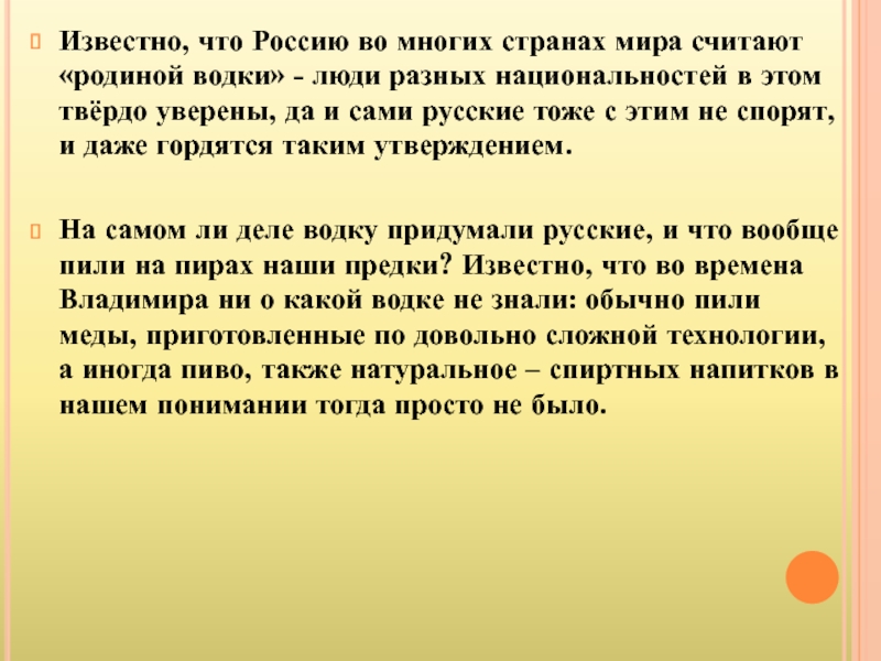 Слайд 6Известно, что Россию во многих странах мира считают «родиной водки» -
