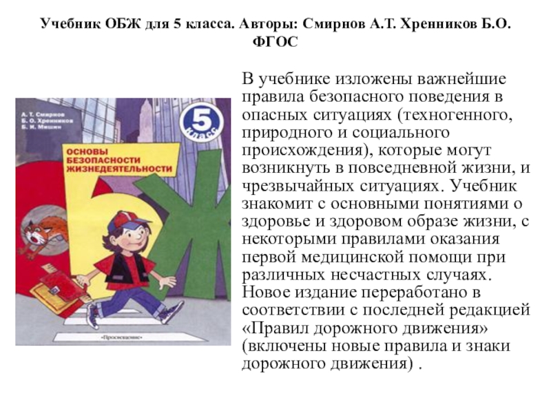 Учебник ОБЖ для 5 класса. Авторы: Смирнов А.Т. Хренников Б.О. ФГОС