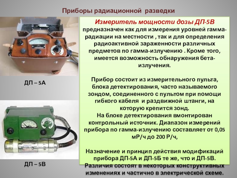 позволяет провести измерение мощности дозы гамма-излучения в диапазоне от 10 мкР/ч до 999 Р/ч, а также измерение интенсивности бета-излучения с поверхностей и измерение удельной бета- и альфа- активности продовольствия, воды и фуража.