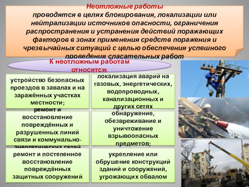 ремонт и восстановление повреждённых и разрушенных линий связи и коммунально-энергетических сетей