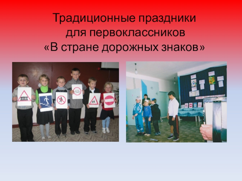 Слайд 7Традиционные праздники для первоклассников «В стране дорожных знаков»