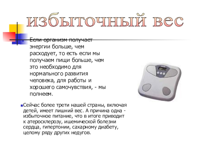 получаем пищи больше, чем это необходимо для нормального развития человека, для работы и хорошего самочувствия, - мы полнеем.