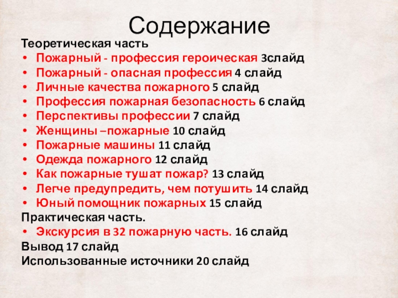 Конкурс презентаций проводится с целью популяризации профессии пожарного, расширения информационной среды и использования информационных технологий в образовательном процессе общеобразовательных учреждений, освещение наиболее ярких, значимых событий истории пожарной охраны России, героических поступков огнеборцев. В своей работе я хочу показать, что данная профессия достойна уважения, так как служит примером для подражания для всех нас.