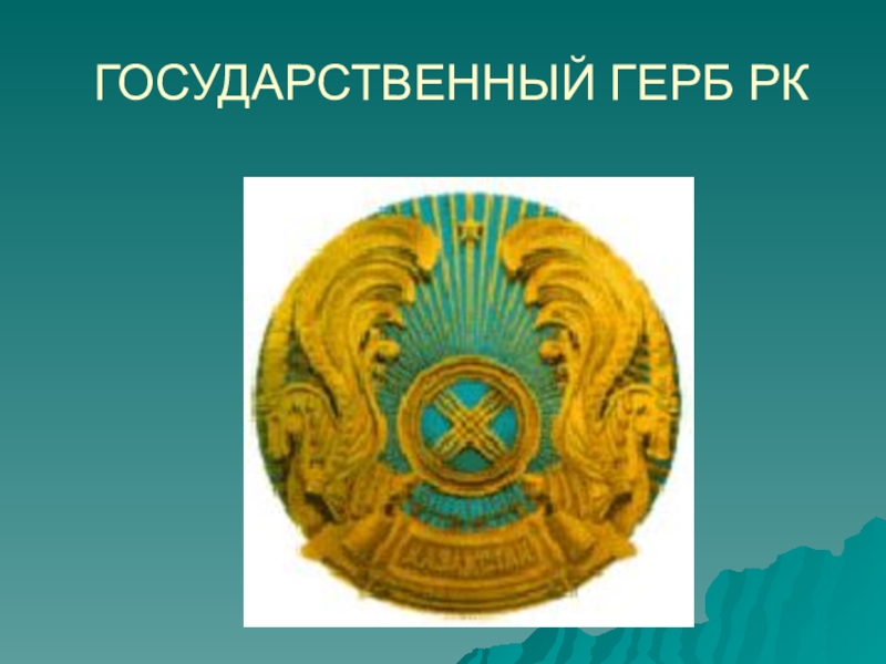 Слайд 6Государственный герб Республики Казахстан представляет собой изображение шанырака (верхняя сводчатая часть