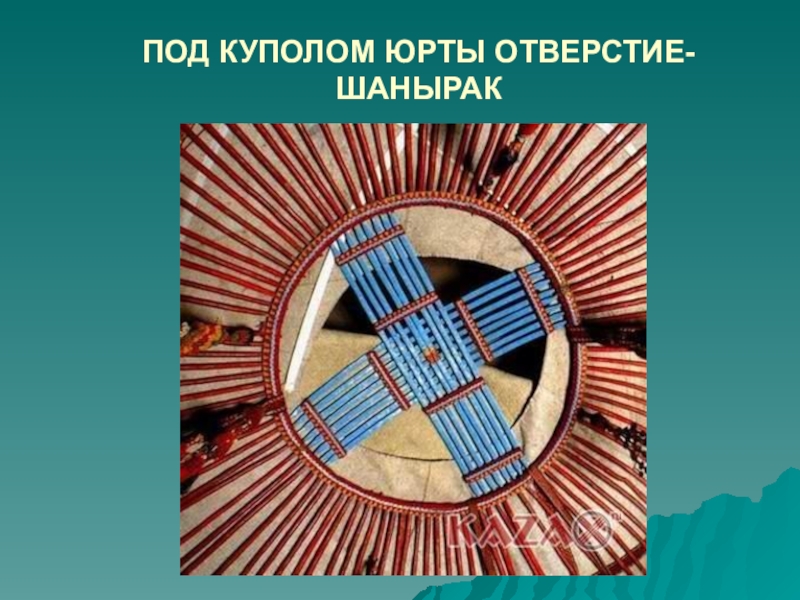 Слайд 15ПОД КУПОЛОМ ЮРТЫ ОТВЕРСТИЕ- ШАНЫРАК