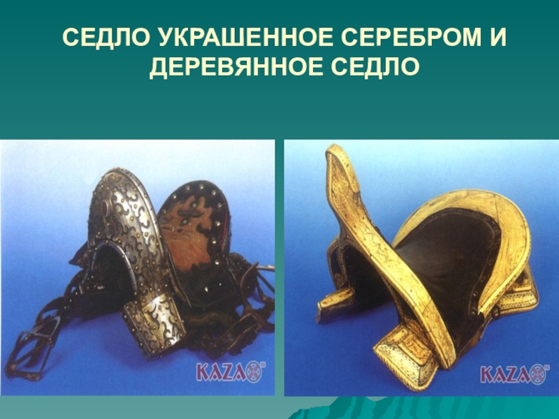 Слайд 27СЕДЛО УКРАШЕННОЕ СЕРЕБРОМ И ДЕРЕВЯННОЕ СЕДЛО
