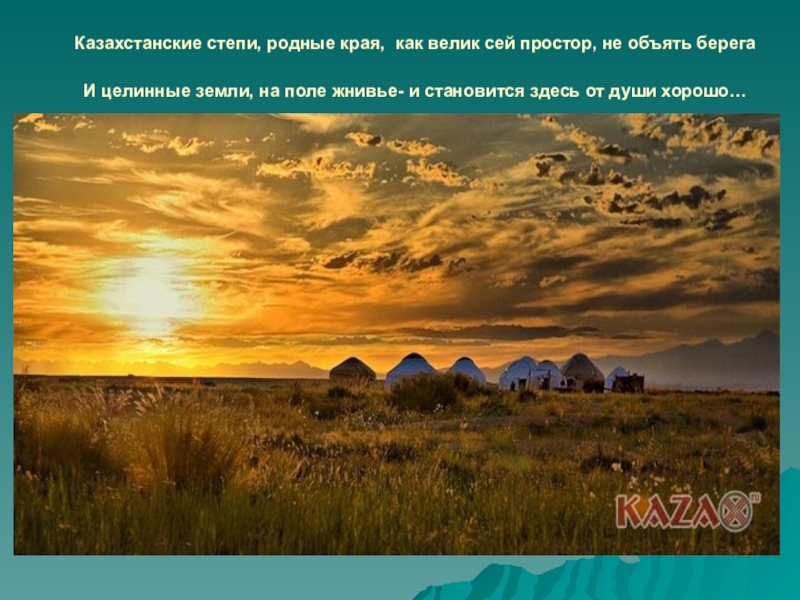 Слайд 8Казахстанские степи, родные края, как велик сей простор, не объять берега