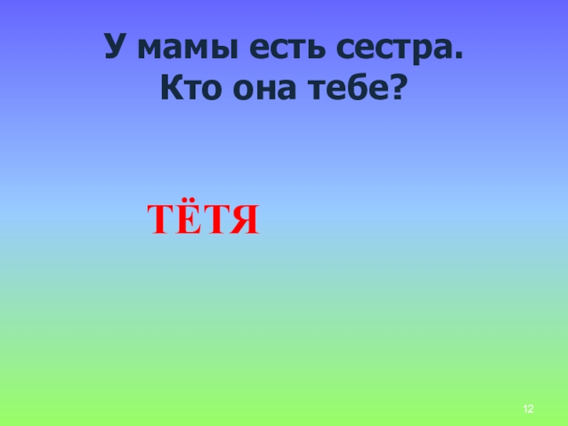 Слайд 12У мамы есть сестра. Кто она тебе?