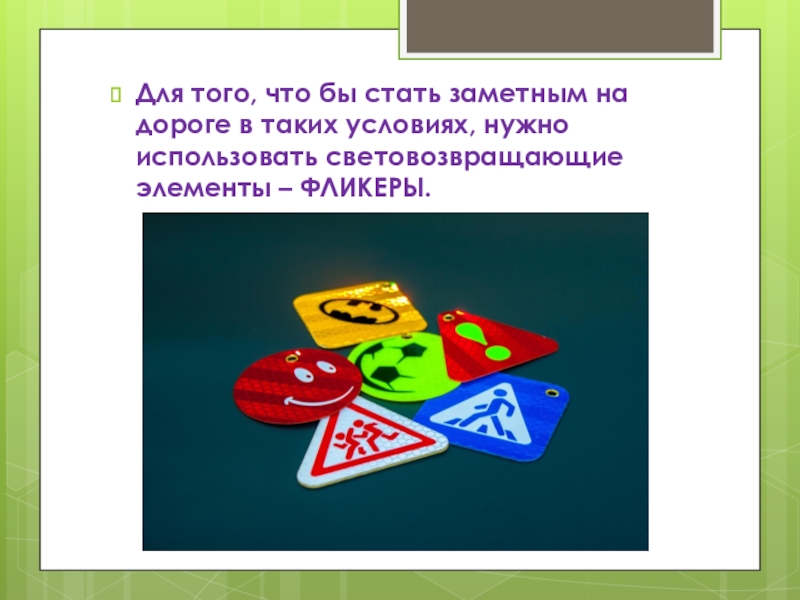 нужно использовать световозвращающие элементы – ФЛИКЕРЫ.