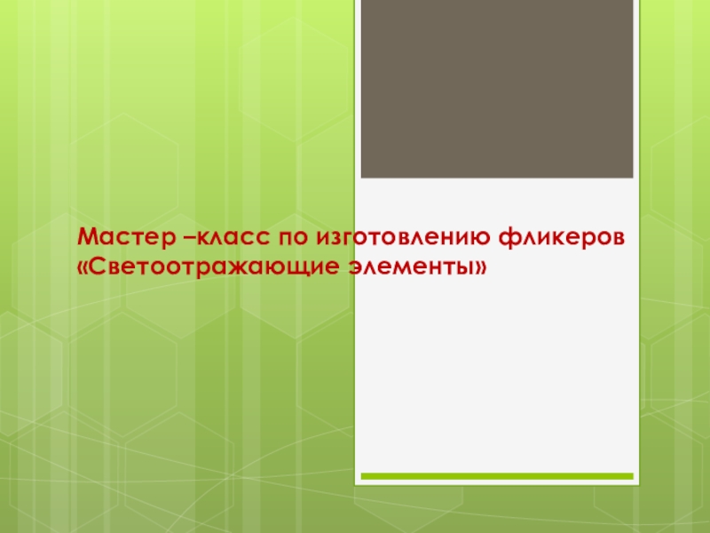 Презентация, доклад на тему Мастер-класс по изготовлению фликеров (светоотражающих элементов)