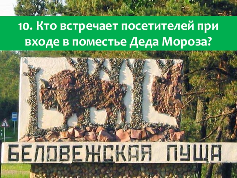 Слайд 4010. Кто встречает посетителей при входе в поместье Деда Мороза?
