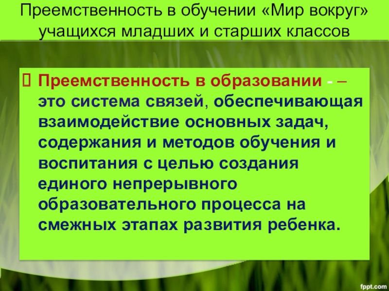 Слайд 2Преемственность в обучении «Мир вокруг» учащихся младших и старших классов
