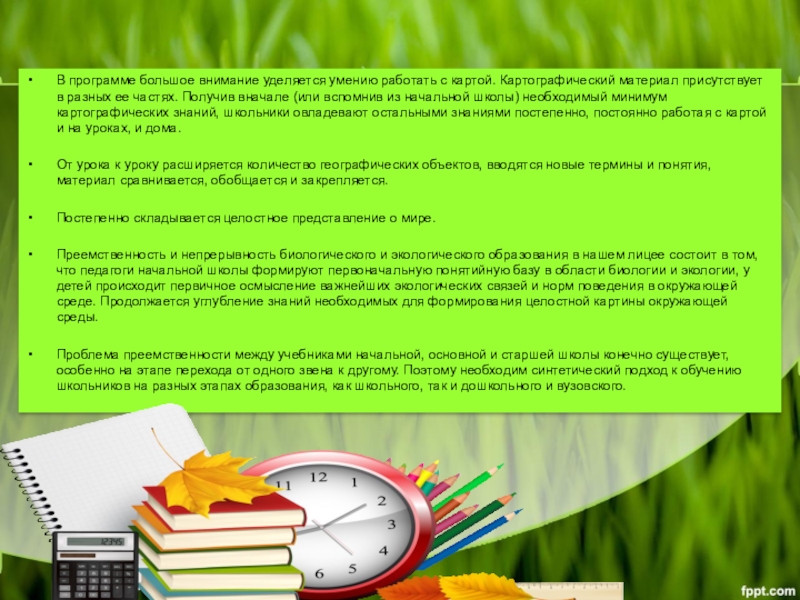 Слайд 9В программе большое внимание уделяется умению работать с картой. Картографический материал
