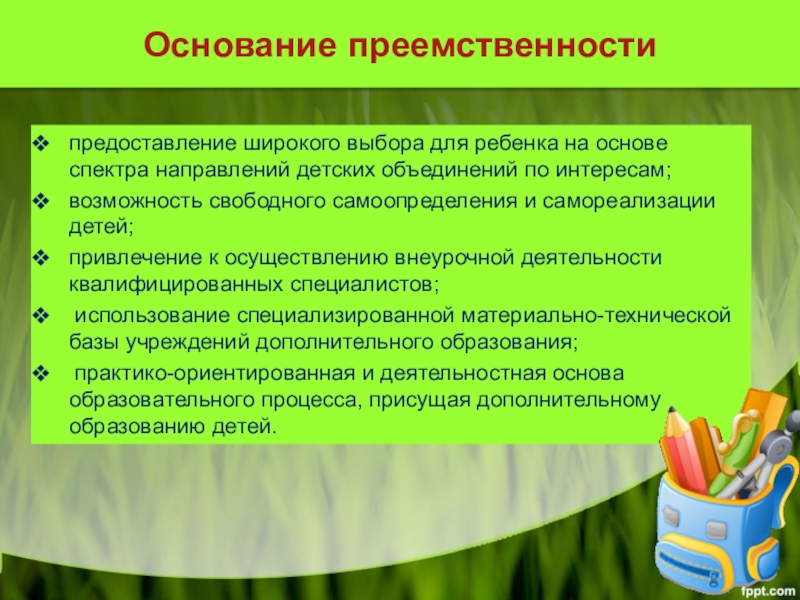 Слайд 3Основание преемственности