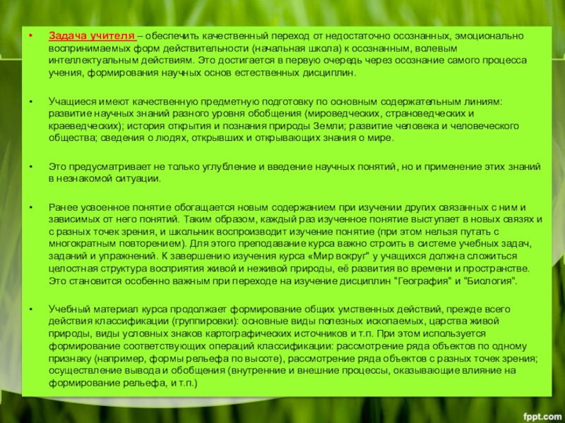 Слайд 7Задача учителя – обеспечить качественный переход от недостаточно осознанных, эмоционально воспринимаемых