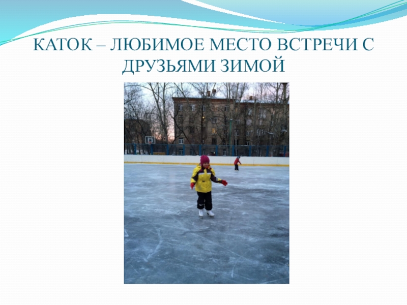 Слайд 6КАТОК – ЛЮБИМОЕ МЕСТО ВСТРЕЧИ С ДРУЗЬЯМИ ЗИМОЙ