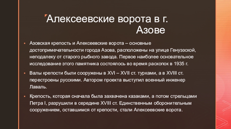 Алексеевские ворота в г.Азове Азовская крепость и Алексеевские ворота – основные достопримечательности города Азова, расположены на улице