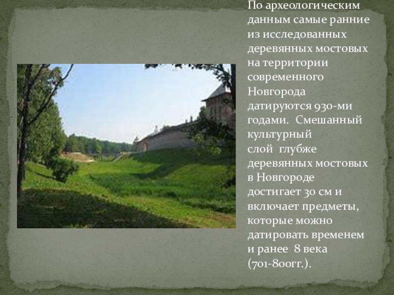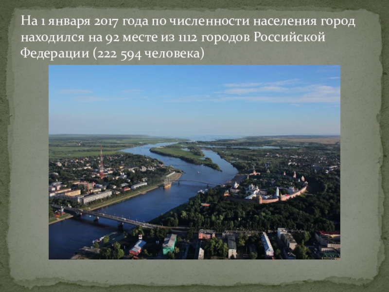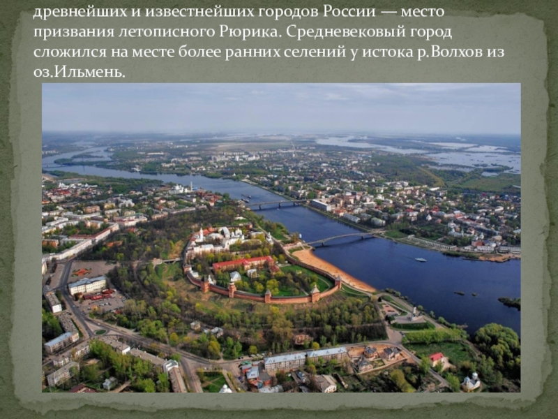 городов России — место призвания летописного Рюрика. Средневековый город сложился на месте более ранних селений у истока р.Волхов из оз.Ильмень.