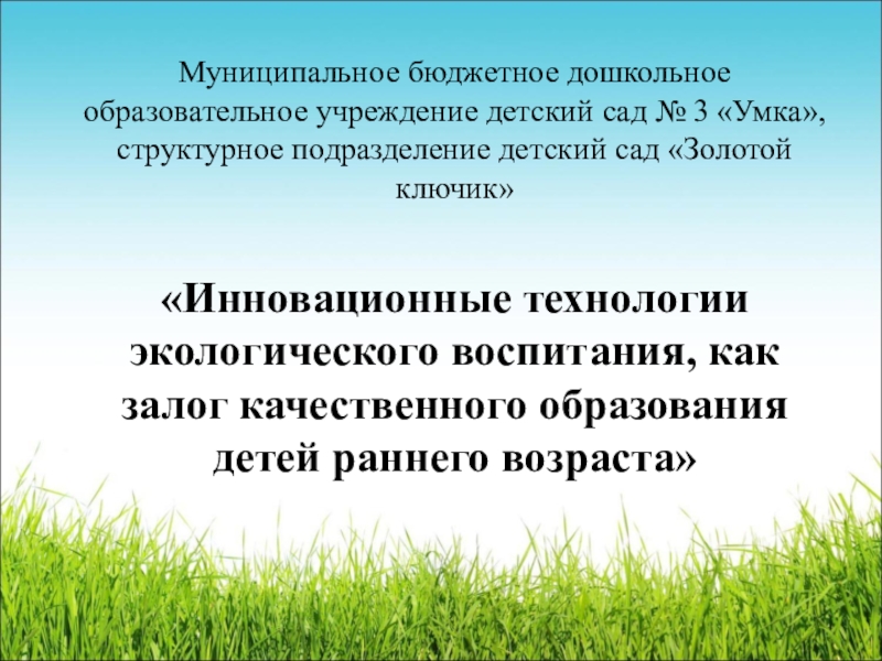 «Инновационные технологии экологического воспитания, как залог качественного образования детей раннего возраста»