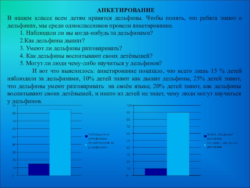 ребята знают о дельфинах, мы среди одноклассников провели анкетирование.